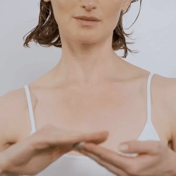 - Apply from collarbone to jawline in a upward motion, morning and evening
